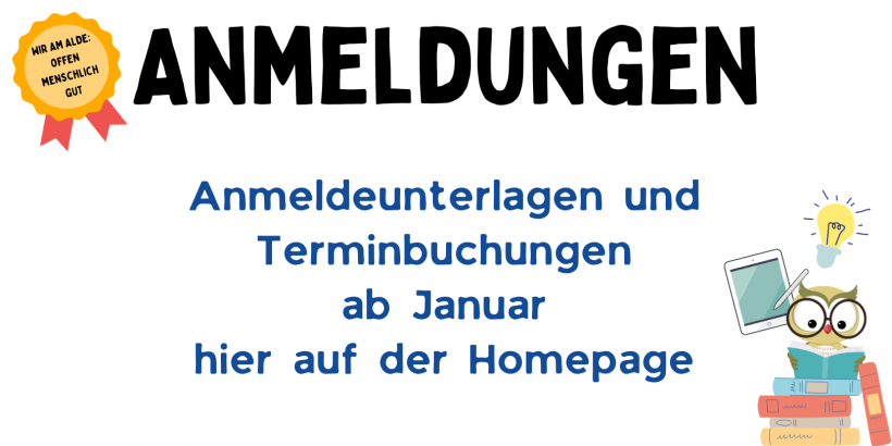 Willkommen auf den Anmeldeseiten zum Schuljahr 2026/27! WIR AM ALDE freuen uns, Sie und Euch begrüßen zu dürfen 🙂 Anmeldungen sind nach vorheriger Terminbuchung zu den folgenden Zeiten möglich: Anmeldetermine können ab Januar direkt hier auf der Seite gebucht werden. […]