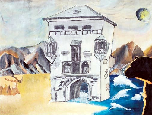 Kim Thomae kreierte ein apokalyptisches Szenario: Das Soester Osthofentor in einer unwirtlichen Wüstenlandschaft, umgeben von schroffen Bergen und bedroht von den Fluten des Meeres. Was da wohl passiert sein mochte? »Der Klimawandel verändert Orte« nannte die 15-Jährige ihr Bild.