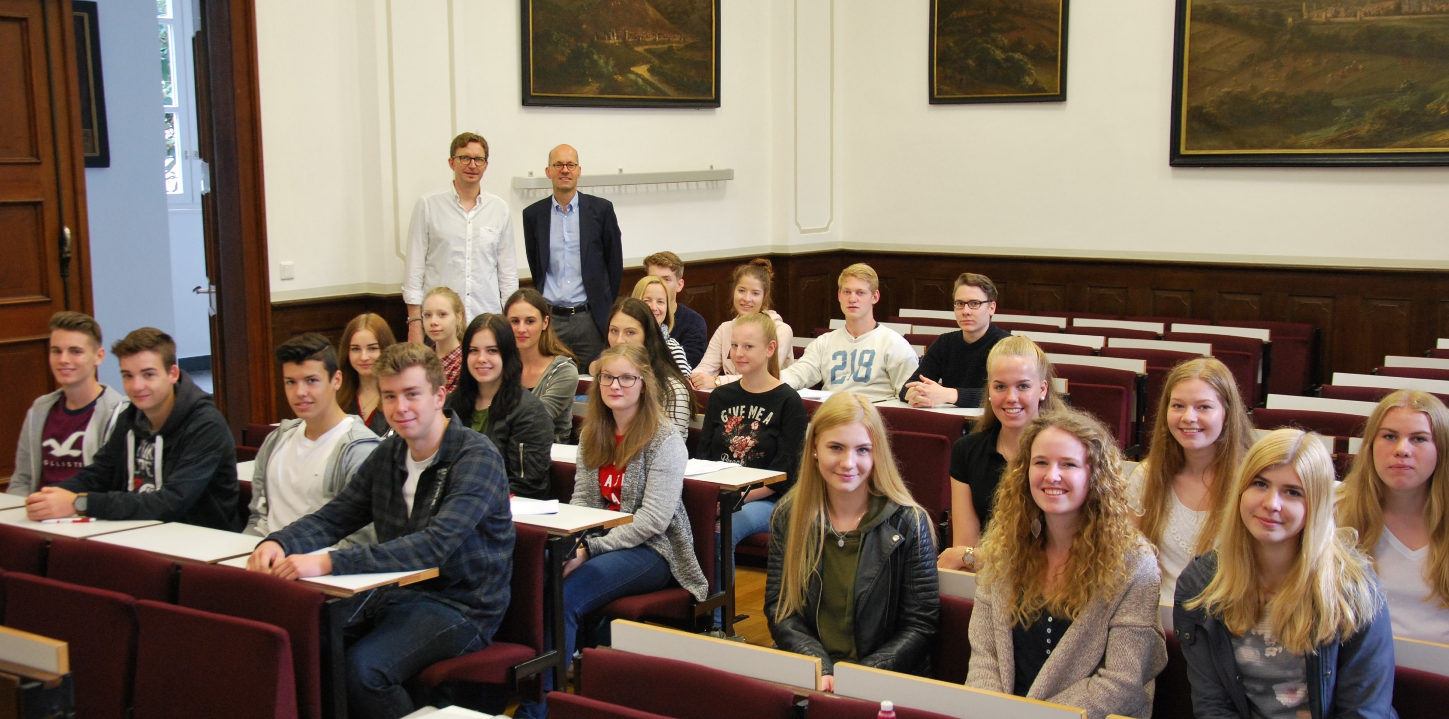 Diese Kurzvorlesungen sollen einen Einblick in das universitäre Studium und das Fach Katholische Theologie geben. Dabei werden aktuelle und kontroverse Themen der Theologie und Philosophie vermittelt sowie ein Überblick über die Strukturen des Studiums der Katholischen Theologie und die späteren Berufsfelder gegeben. Im Anschluss an die Vorlesungen diskutierten die Schülerinnen und Schüler engagiert und interessiert mit den Dozenten Prof. Dr. Dr. Bernd Irlenborn und Prof. Dr. Dr. Dieter Hattrup über die Inhalte der Vorlesungen. Auch im Anschluss an die Vorlesungen wurden die Themen weiter diskutiert.