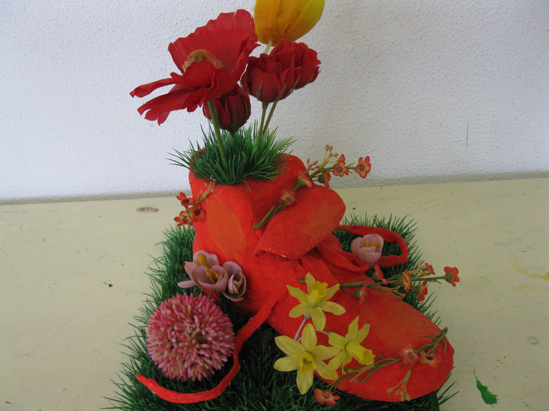Die Bilder entstanden im 10. Schuljahr – nun sind die jungen Leute schon in der Jahrgangsstufe 11. »Stadtansichten, magische Wasserlandschaften, zauberhafte Natur«, so die Motive der Bilder. Eine Landkarte Europas wurde aufgehängt, um die einzelnen Orte, die in den Bildern thematisiert sind, zu zeigen. Die Bilder sind als kleine Bildabzüge an ihrem jeweiligen Ort auf der Landkarte positioniert – Von Norden bis Süden, von Westen bis in den Osten. »Es steckt die Idee dahinter, Orte zu malen, wo wir Schüler schon gewesen sind, oder wo wir uns hinwünschen«, sagen die jungen Künstler. Wo sie vielleicht als Austauschpartner schon waren oder noch sein werden. Manchmal kann sich der junge Künstler nicht für einen einzigen Ort entscheiden: die Lagune vor Venedig und gleichzeitig in Spanien die Kirche Sagrada Familia von Antoni Gaudi – beides ist gleichermaßen spannend. Aber auch die Soester Börde wird thematisiert – heimatlich – Weizenfelder und regenverhangener Himmel.