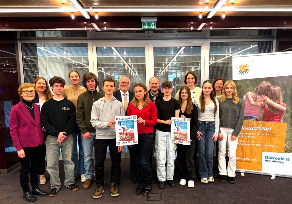 Es ist ein Gemeinschaftsprojekt, wie es im Buche steht. Und dass die Realisierung durch Schülerinnen und Schüler des Soester Aldegrever-Gymnasiums auf der einen und der Körbecker Möhneseeschule auf der anderen Seite mitten in der Öffentlichkeit stattfindet und zudem noch für ein Musik-Event am 29. Mai in der Kreisstadt sorgt, ist das i-Tüpfelchen – „sozialgenial“ sozusagen. Genau das ist auch der Name des Service-Learning Programms, das deutschlandweit von der „Stiftung Aktive Bürgerschaft“ getragen und vor Ort im Kreis Soest von der Volksbank Hellweg umgesetzt und gefördert wird. Deren Vorstandsvorsitzender Bernd Wesselbaum freute sich jetzt besonders über die Verwirklichung des Kommunen-übergreifenden Gemeinschaftsprojektes „ALDE meets YBB“ im Rahmen von „Sozialgenial“, als er bei einem Treffen mit den zuständigen Lehrerinnen und Lehrern die positive Nachricht überbrachte, dass die Maximalförderung von 2000 Euro für die kooperative Planung und Durchführung des Benefizkonzertes genutzt werden kann.